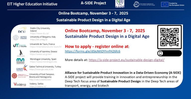 Универзитет у Источном Сарајеву позива студенте, академско и административно особље да се пријаве за учешће у међународној онлајн обуци “Одрживи дизајн производа у дигиталном добу”, која ће бити одржана од 3. до 7. новембра 2025. године у оквиру EIT HEI пројекта A-SIDE (Alliance for Sustainable Product Innovation in a Data-Driven Economy). Ова интензивна обука намијењена […]